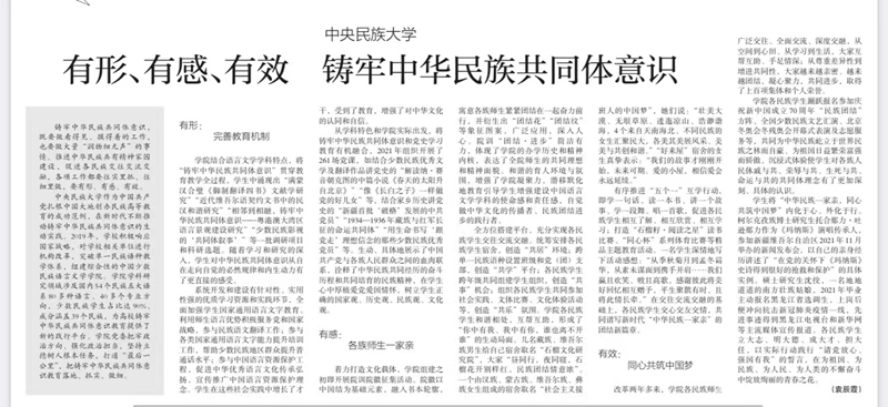 有形 有感 有效|少语学院副书记袁辰霞在《中国教育报》刊发文章谈铸牢中华民族共同体意识之学院实践