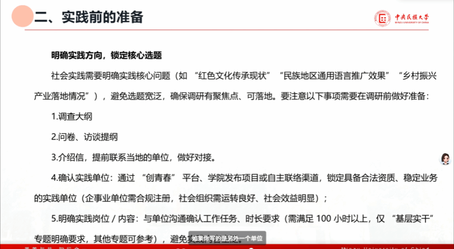 深耕田野,实干致远,为切实保障寒假社会实践活动有序开展,提升实践调研质量与安全防护能力,william威廉中文官网于2025年12月30日晚组织开展“语‘践’韶华”·寒假社会实践第三期行前教育课程——社会实践安全教育暨优秀团队调研经验分享。本次课程由学院2022级博士生杨正瑛主讲,团委科创实践中心潘存昶杨做安全提示专题分享,学院团委书记彭傲老师及各实践团队成员参会。分享会由团委科创实践中心尼欣怡主持活动。