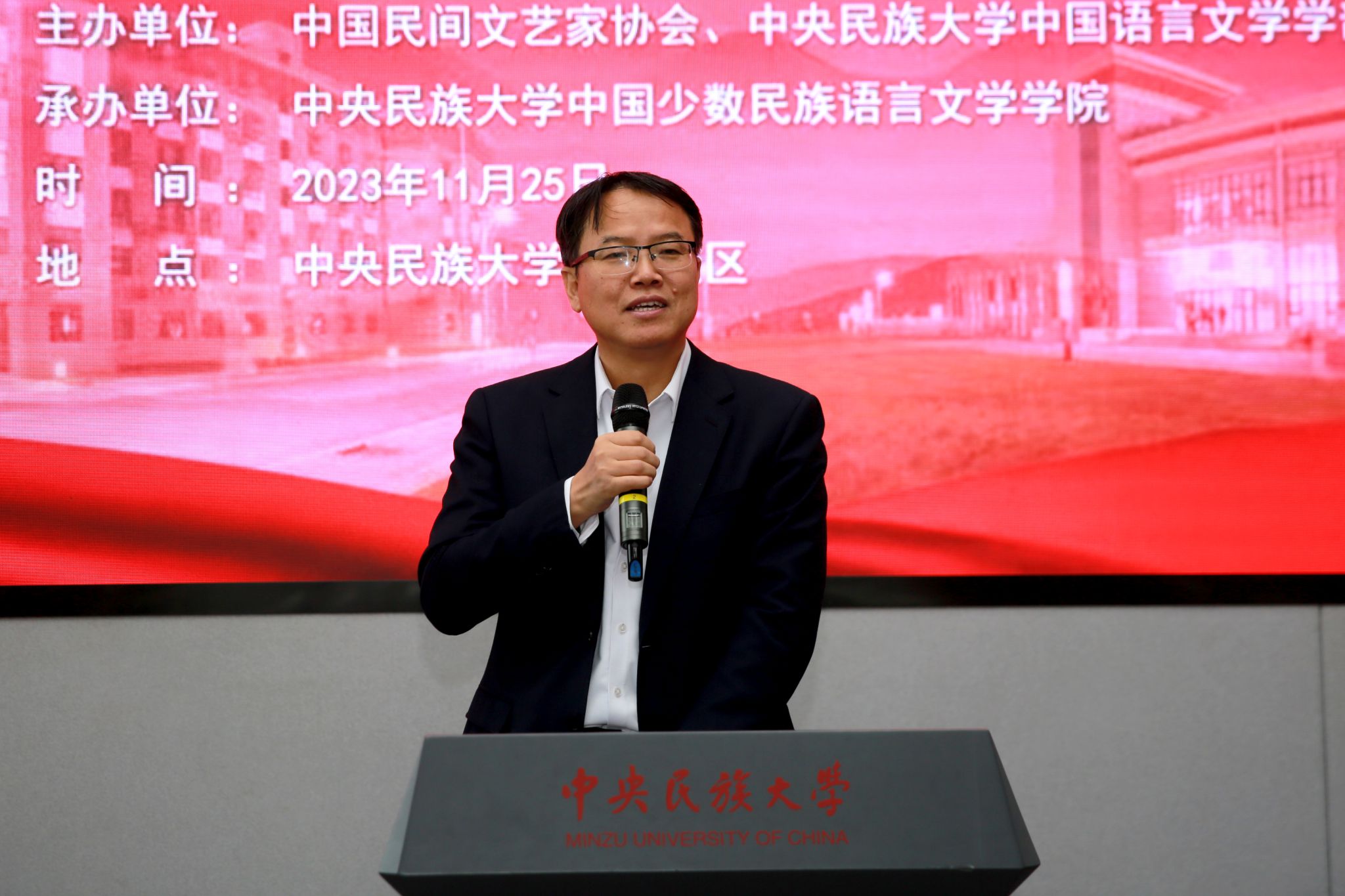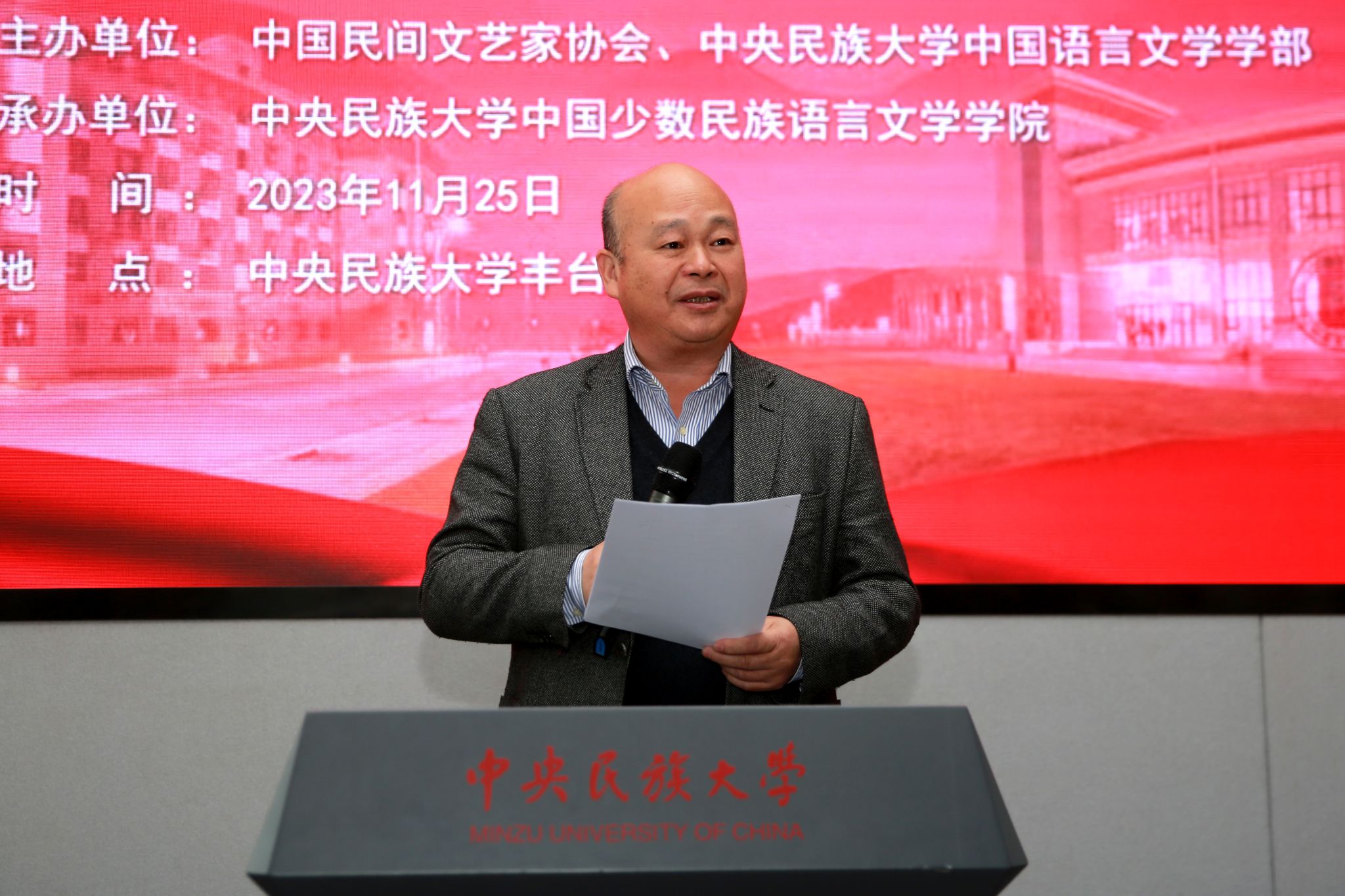 中国作家协会副主席白庚胜,中国民间文艺家协会分党组书记、驻会副主席邱运华,中央民族大学党委常委、副校长石亚洲,中国民间文艺家协会副主席、北京师范大学教授万建中,中国民间文艺家协会副主席、中央民族大学教授林继富,中国民间文艺家协会分党组成员、副秘书长王锦强,中国社会科学院民族学与人类学研究所研究员黄成龙,中央民族大学荣誉资深教授胡振华,中央民族大学荣誉资深教授戴庆厦以及学校师生代表参加了会议。