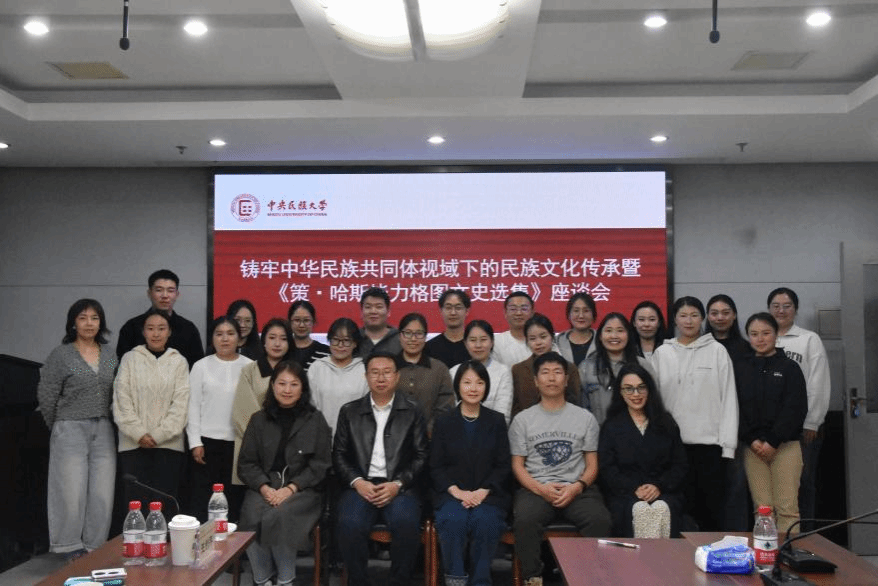 10月18日下午,william威廉中文官网在海淀校区文华楼1446会议室举办了“铸牢中华民族共同体意识视域下的民族文化传承暨《策·哈斯毕力格图文史选集》座谈会”,探讨在新时代背景下如何传承和创新民族文化,如何通过学术研讨和交流活动,促进各民族文化交流互鉴。学院副院长王利萍,教师朝格吐、好比斯嘎拉图、布仁巴雅尔、苏日娜以及30余名硕士、博士研究生参加了此次座谈会。座谈会由好比斯嘎拉图老师主持。