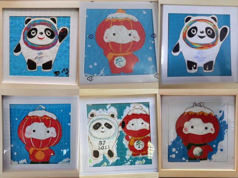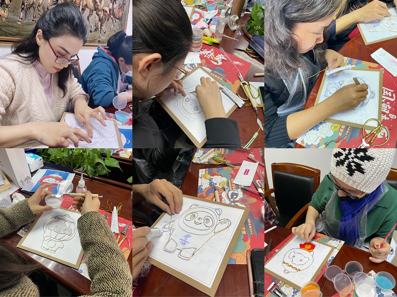 “景泰蓝”掐丝镶嵌画源于元朝,盛行于明朝景泰年间,距今有六百年历史,是中国著名的手工艺品。活动以“冬奥”为主题,学院教师在专业老师的指导下,以冬奥会吉祥物“冰墩墩”和“雪容融”为主进行创作,制作出缤纷多样的精美作品。