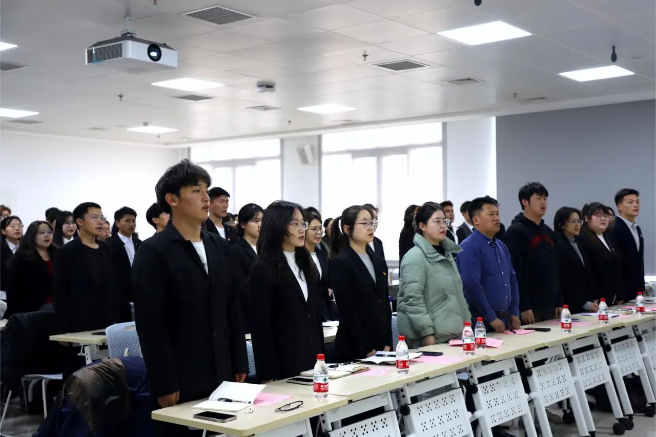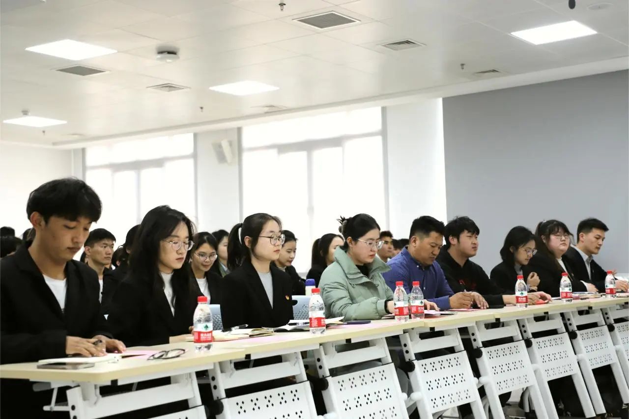 会议第三项,学院辅导员李永玖老师围绕学院院训“团结、进步”进行了分享。他表示,要将铸牢中华民族共同体意识深度融入团学日常工作当中,彰显学院特色,促进部门内外团结协作,集聚合力攻坚克难。面对工作挑战,他勉励大家坚守初心,积累经验,精进个人能力。此外,他还鼓励同学们在各类活动策划筹备过程中积极交流,携手并进,以确保活动圆满完成。