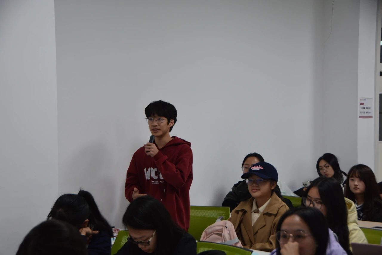 同学们与学长学姐就“应该从哪些方面着手为就业创业做准备”、“如何根据自己的就业创业方向进行选课”等问题进行了互动交流。