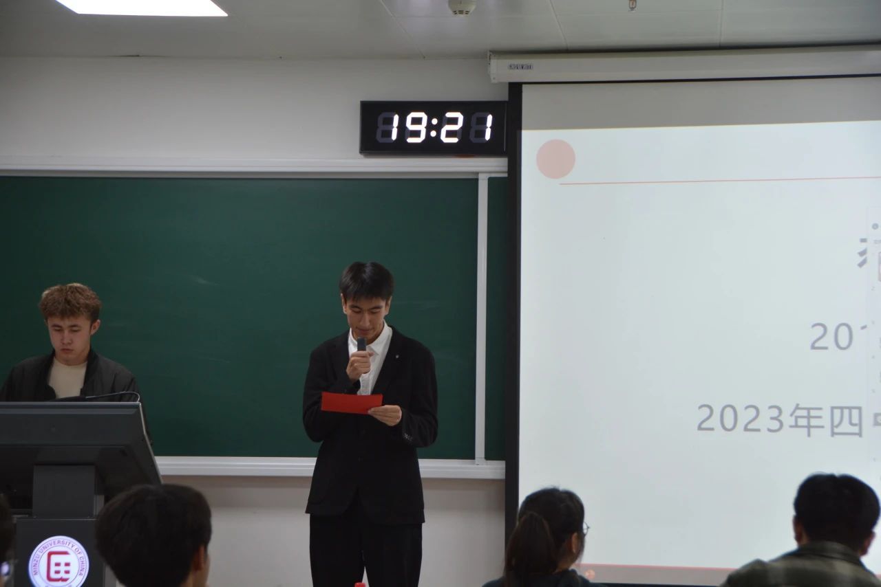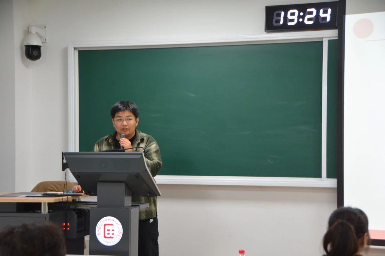 柴乐根以“‘语’你同行,‘职’在必得”为主题分享了自己的职业规划,强调了知己知彼的重要性。知己,即明确自我定位,应充分了解自己的性格特点、兴趣爱好和专业优势等;知彼,即了解社会需求和职业现状,明确自己的职业发展方向,有针对性地进行思考和学习。
