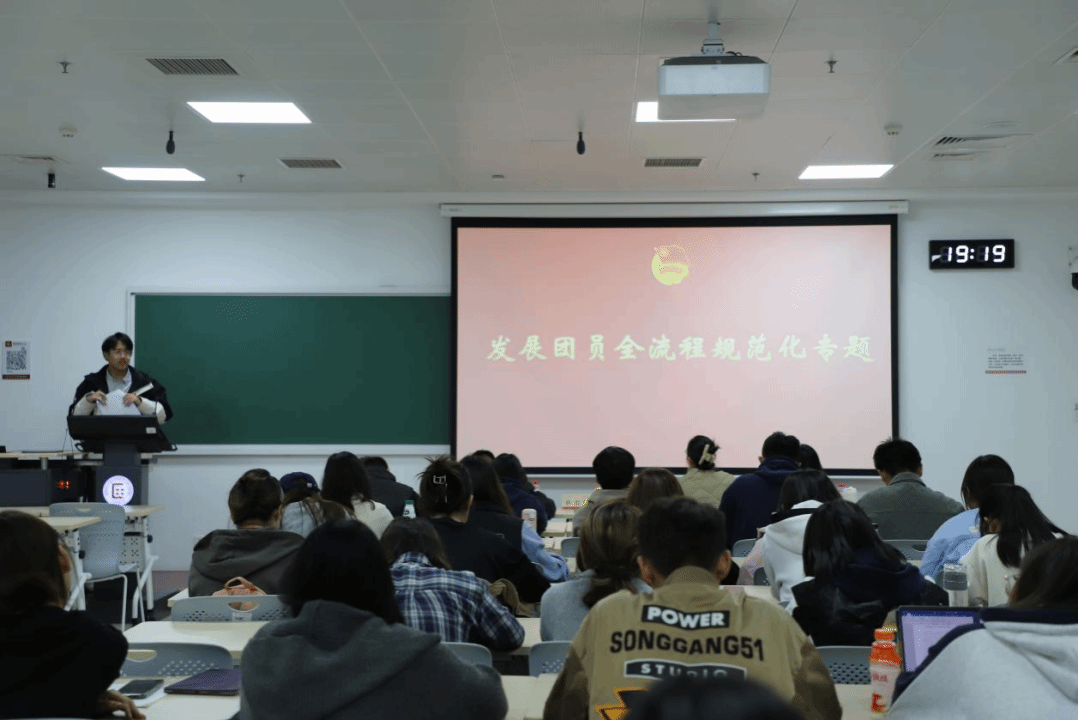 校团委组织部部长薛思晔应邀担任主讲,从“从严治团、支部建设、共青团系统、发展团员规范化、日常团务工作常见问题”五个方面分享了工作经验。在答疑环节,他耐心解答了同学们提出的关于提高团员的积极性主动性、团员激励等方面的疑问,并提供了切实可行的建议。