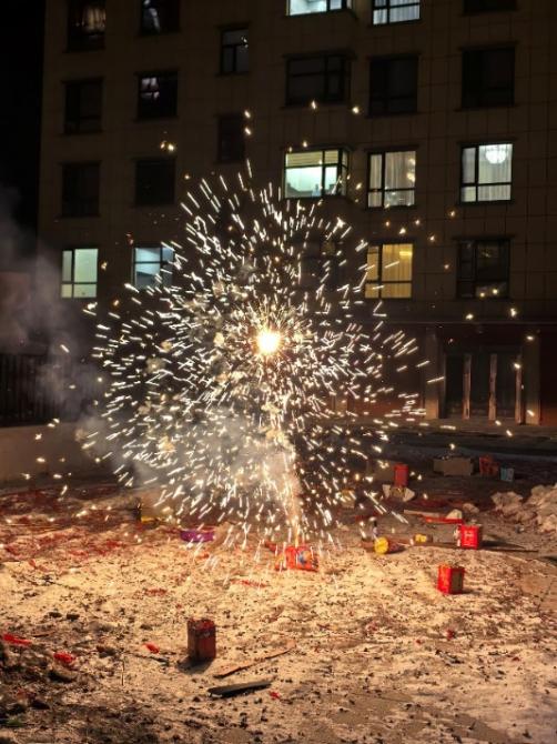 新年伊始,楼灯未眠,残雪尚在。一场烟火骤然绽放,把冬夜的清冷都揉进了这漫天闪烁的暖意里。