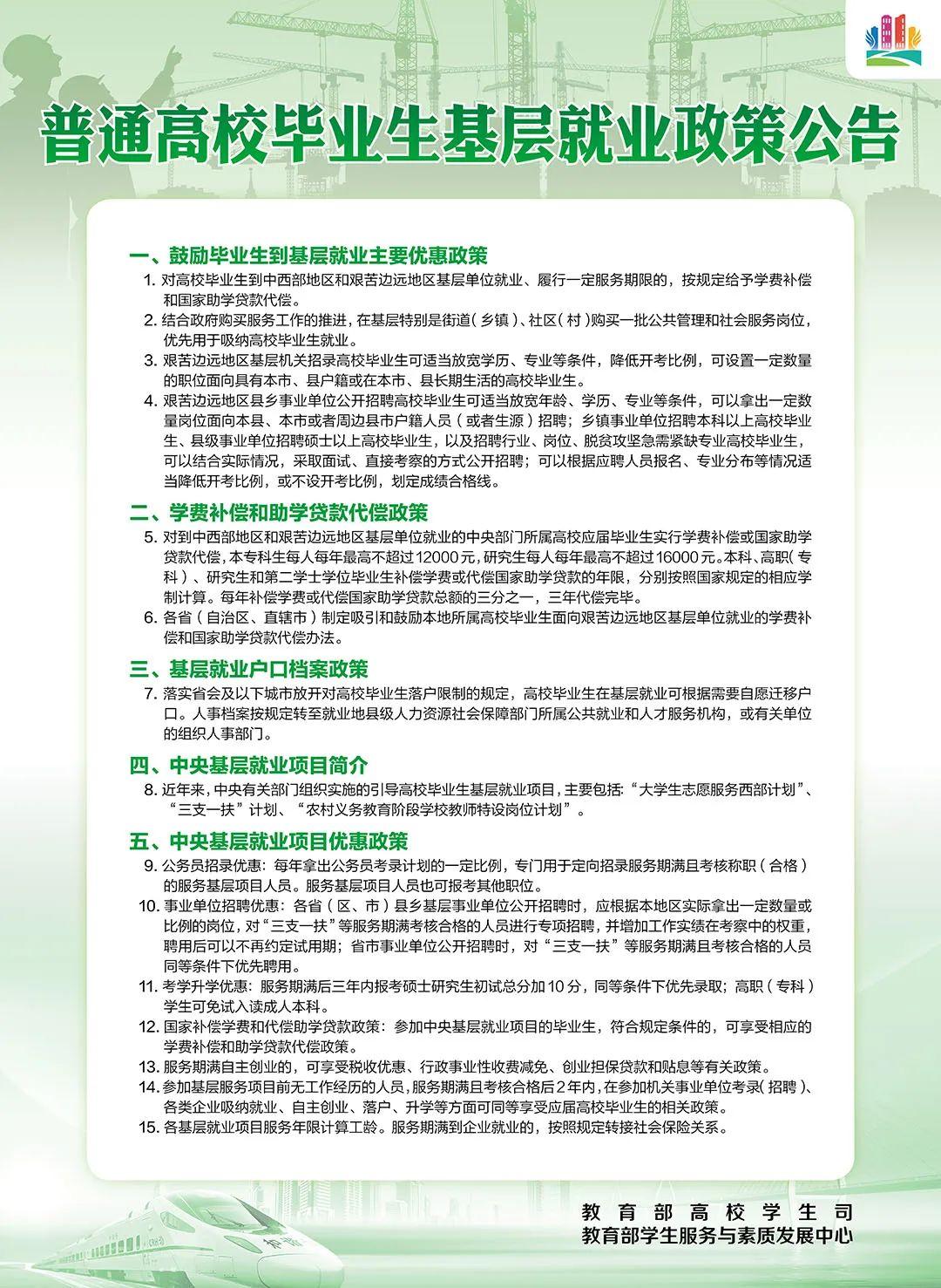 普通高校毕业生基层就业政策公告