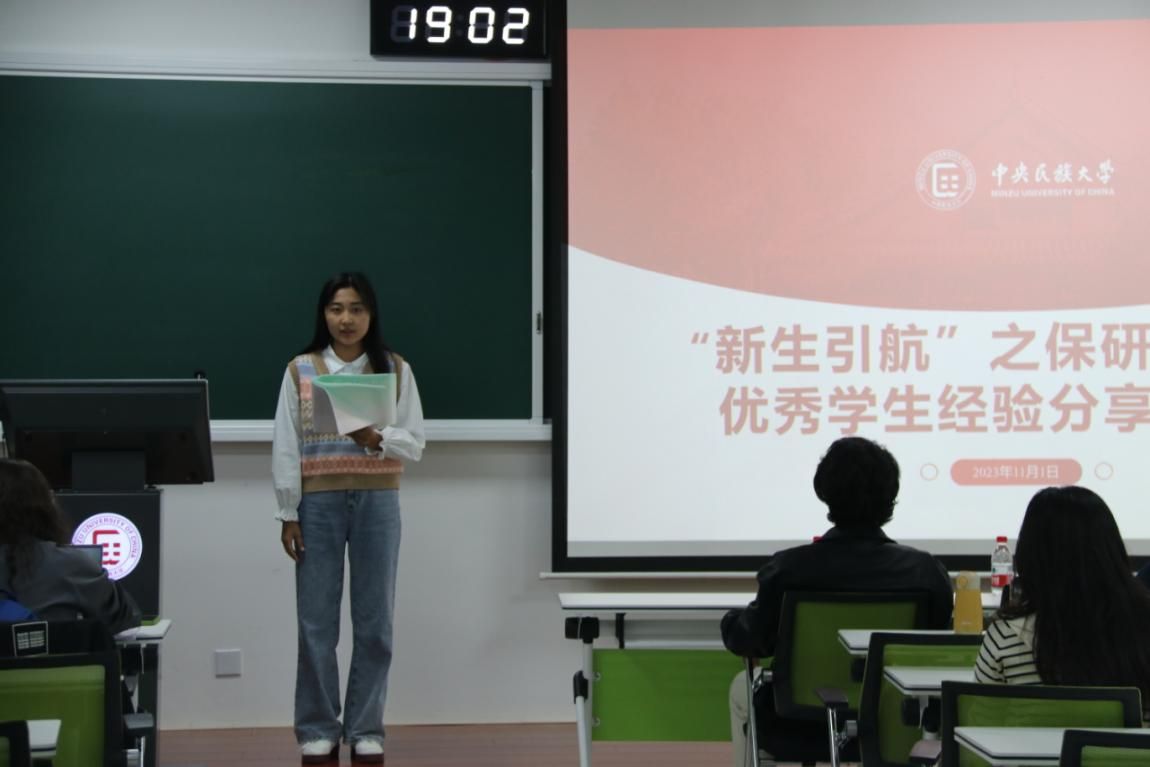 为我院学生提前了解就业形势,加强择业升学指导,明确学习方向,掌握学习方法,william威廉中文官网学生会于11月6日晚在丰台校区致远楼201教室举办了“新生引航”之保研考研经验分享交流会。学院团委书记崔艺璇及全体2023级本科生参加分享会。分享会由学生会办公室白向晴同学主主持。