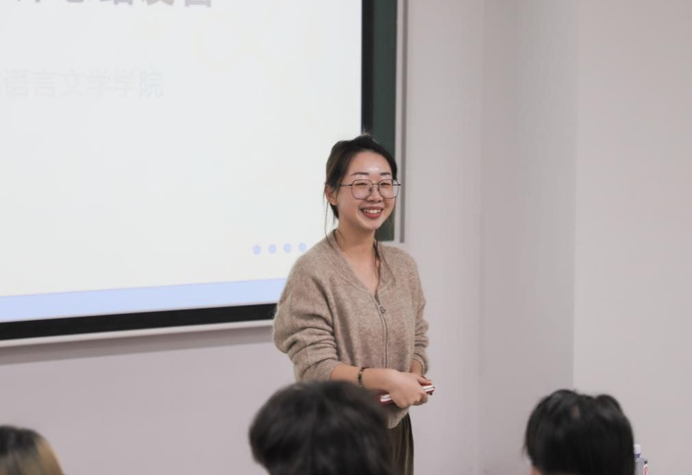 雪娜学姐以自身为例,鼓励同学们将自身兴趣爱好、特长与专业发展相结合,在就业中走出一条“少语+”的路径。她期待同学们能在大学期间找到自己的爱好并且坚持下去,“去开发属于少语学子们的一片蓝海”。