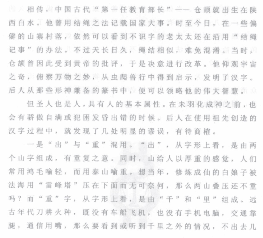 语言文字的发展具有一定的时代特征,了解每个时代的发展状况,才有助于加深对语言文字的认识。有人认为,“出”和“重”是一对造反的字,理由是:“出”是一座山压在另一座山上,因此表示“重”的意思;而“重”是由“千”和“里”组成的,到“千里”之外,就是“出”。[12]246-247实际上,这是用现在的眼光孤立看待汉字字形的问题,也是犯了以今律古的错误。